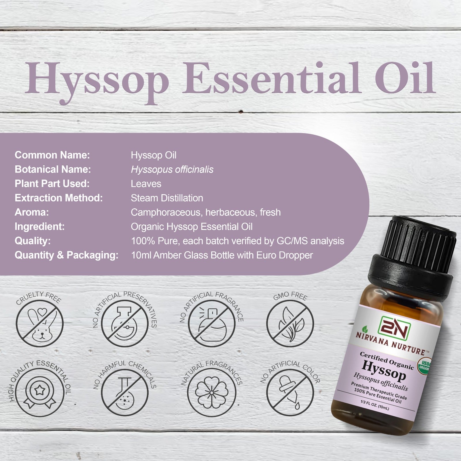 SKIN CARE & SOOTHINGS : Nirvana Nurture essential Hyssop Oil helps soothe minor skin irritations and redness. It helps even skin tone, texture, firmness and overall skin benefits. When diluting a few drops in a carrier oil before applying it.