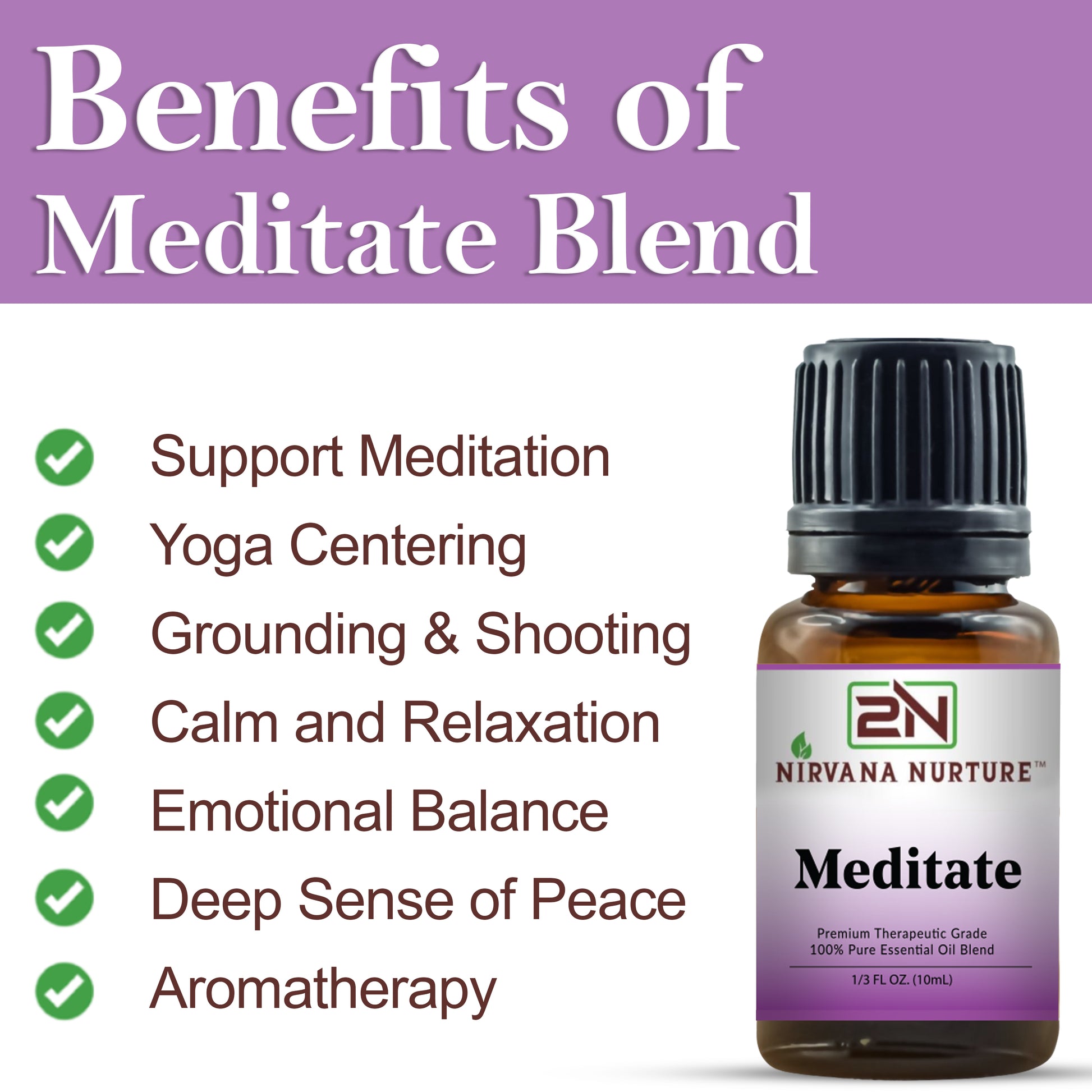 AROMATHERAPY & DIFFUSER : Aromatherapy is a holistic approach that uses a few drops of Nirvana Nurture Meditate Blend to a diffuser to fill your space with calming, uplifting mood aromas. Helps deep relaxation, calm, soothing and countless benefits.