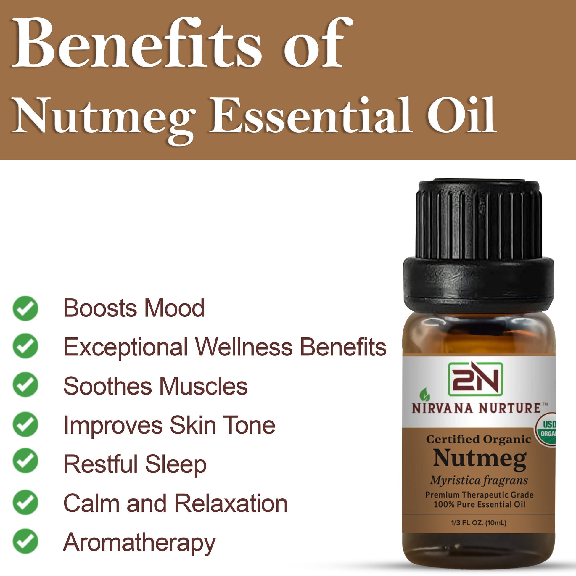 Nutmeg Essential Oil USDA Certified Organic, 100% Pure Natural Premium Grade, Undiluted