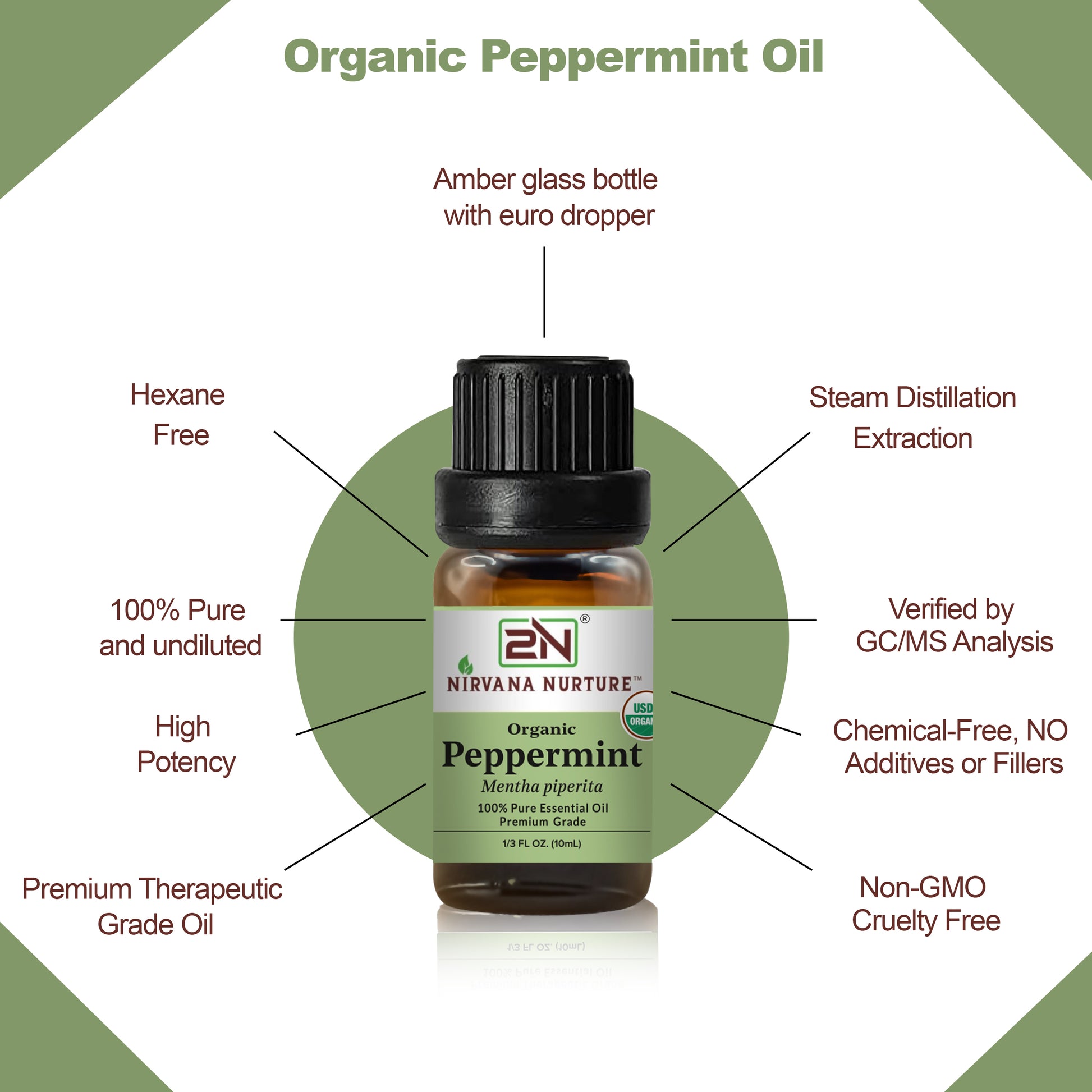 Peppermint Essential Oil USDA Certified Organic, 100% Pure Natural Premium Grade, Undiluted
