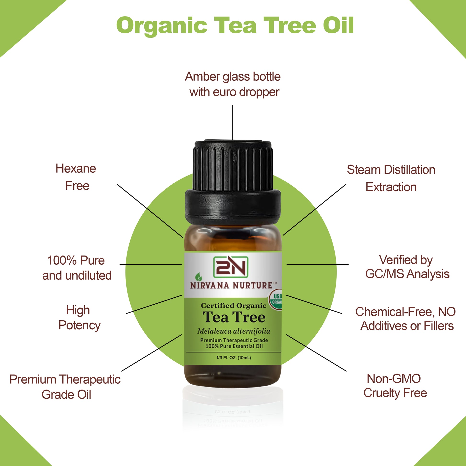 Tea Tree Essential Oil USDA Certified Organic, 100% Pure Natural Premium Grade, Undiluted