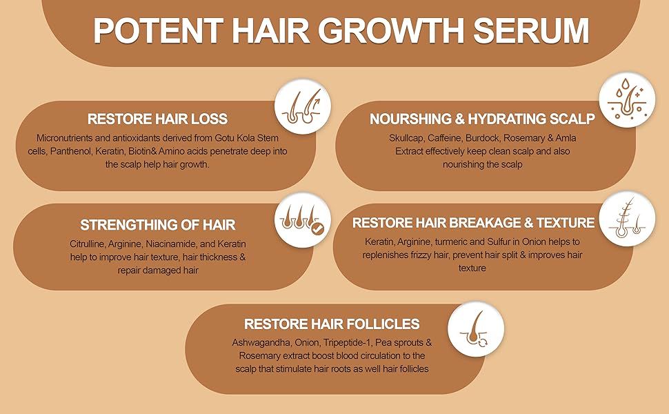 ENHANCES HAIR STRENGTH & SCALP BALANCE : Enriched with Sulfur from Onion, the serum helps reduce breakage, split ends, and overall hair damage. A botanical complex of Skullcap, Caffeine, Burdock Extract, Rosemary Extract, and Amla Extract supports scalp harmony, reduces thinning, and nourishes the scalp for healthier hair density.