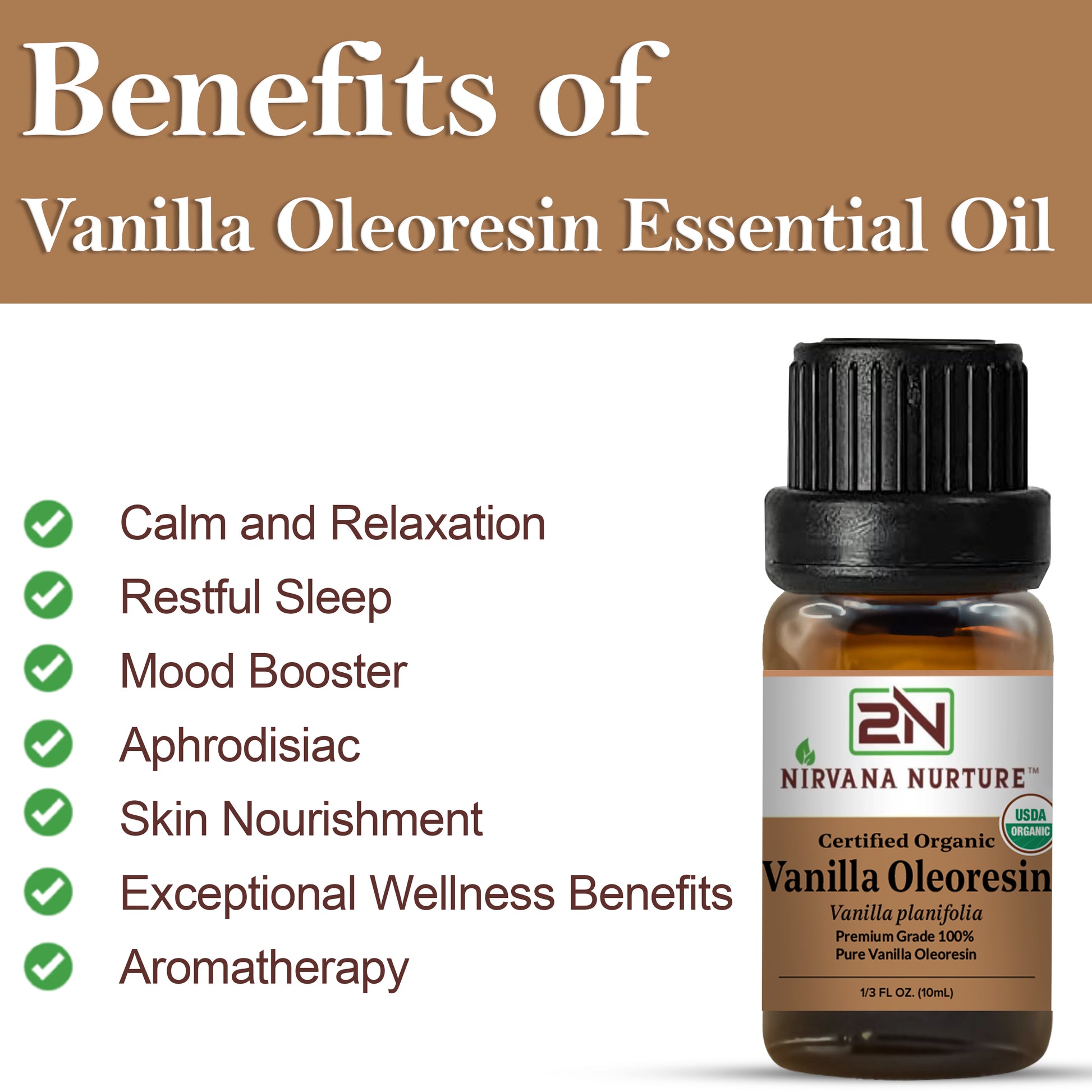 SKIN NOURISHING : Nirvana Nurture Vanilla Oleoresin Oil adds to skincare products, it soothes and hydrates the skin, leaving it soft, smooth, and lightly scented. When diluting a few drops in a carrier oil before applying it.